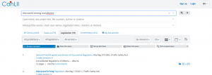 An initial search in CanLII of “Distracted Driving and Alberta” can be helpful to start the search for primary sources. Boolean operators are also a great tool to use when conducting research and can help to narrow or widen your results. Boolean operators are discussed in detail in an earlier chapter. After entering this into the CanLII search bar, you can specify your search to look at cases or legislation. From here, I would click on legislation so that we can learn more about Alberta’s rules on distracted driving.