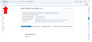 The link should then take you to the Traffic Safety Act, RSA 2000, c T-6. Tip: Make sure to check that you have the correct jurisdiction for the location of the offence.